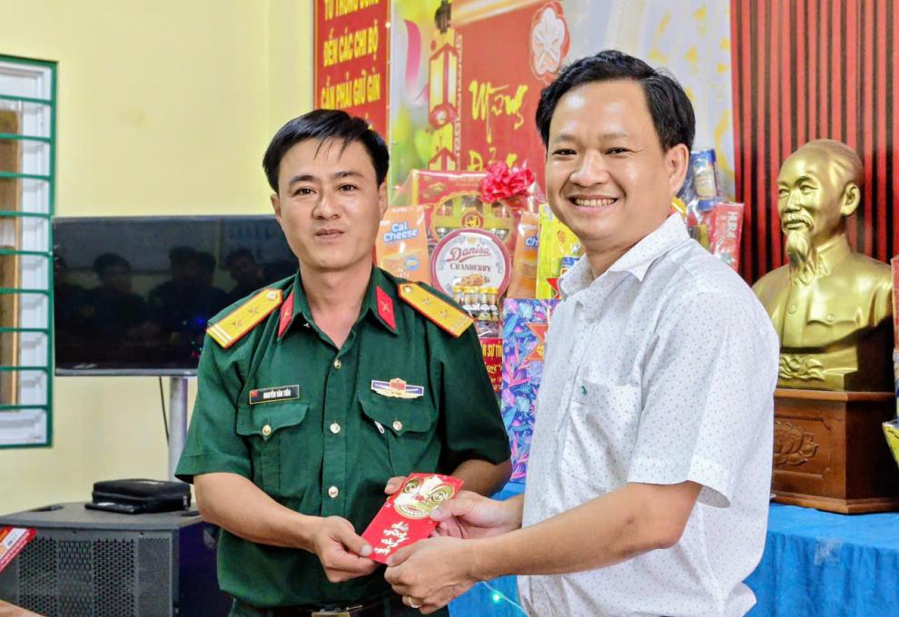 Nhằm động viên tinh thần các lực lượng làm nhiệm vụ trực sẵn sàng chiến đấu và giữ gìn an ninh trật tự trong dịp Tết Nguyên đán, chiều 13-2, đồng chí Chủ tịch UBND xã Vĩnh Thạnh Trung Lý Huỳnh Nhật Tiến đã đến thăm, chúc Tết và tặng quà cho tập thể cán bộ, chiến