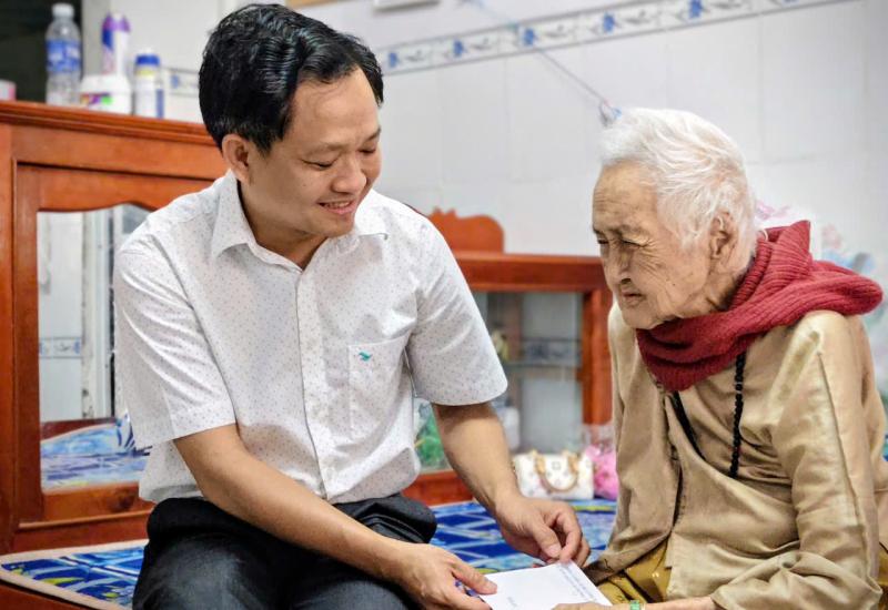 Chiều ngày 13-2, ông Lý Huỳnh Nhật Tiến, Phó Bí thư Đảng uỷ, Chủ tịch UBND xã Vĩnh Thạnh Trung đã đến thăm và chúc Tết Mẹ Việt Nam Anh hùng La Thị Lên nhân dịp Tết Nguyên đán.