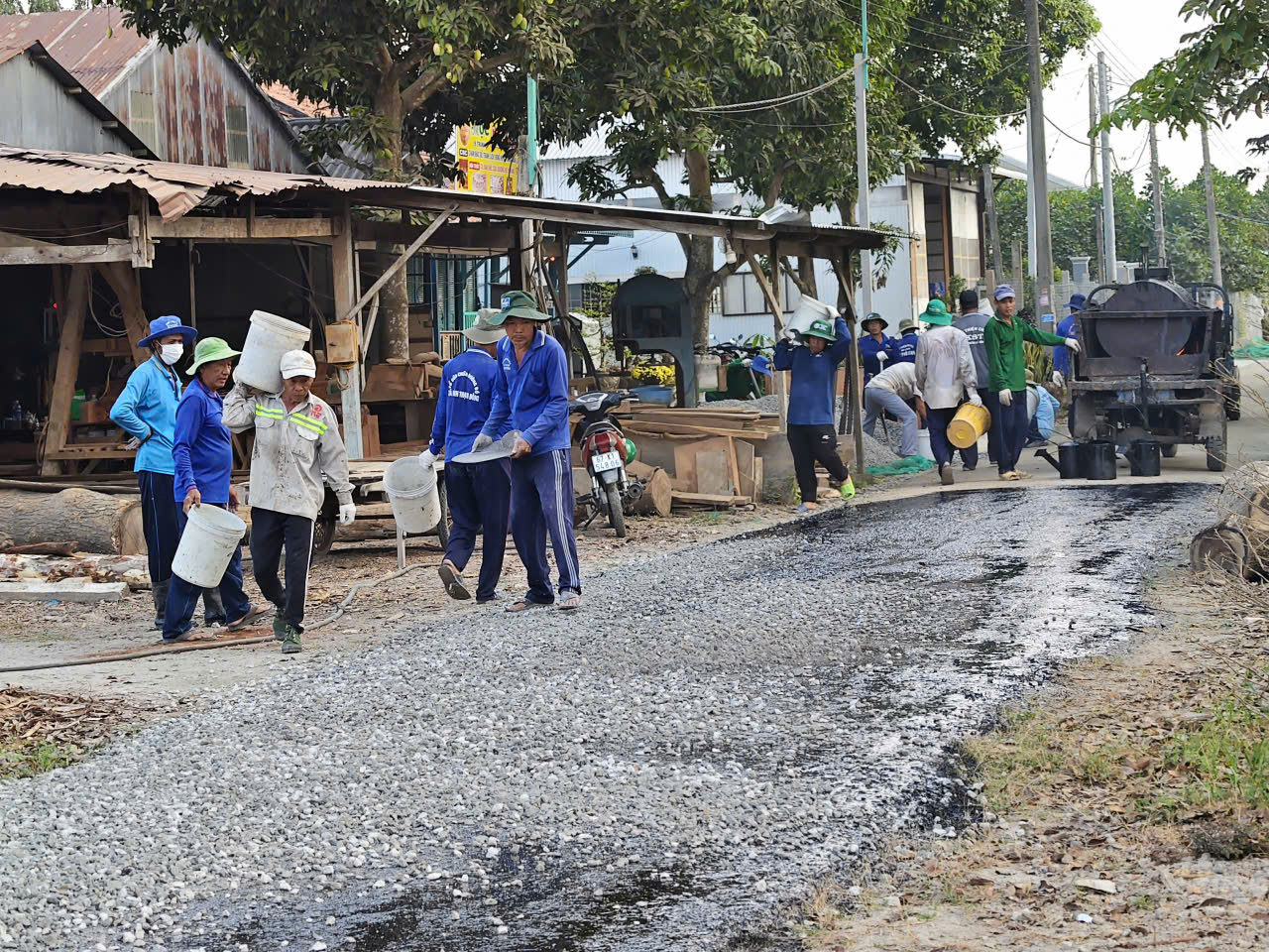Ấp Thạnh An, xã Vĩnh Thạnh Trung phát huy đoàn kết láng nhựa đường Bắc kênh 10