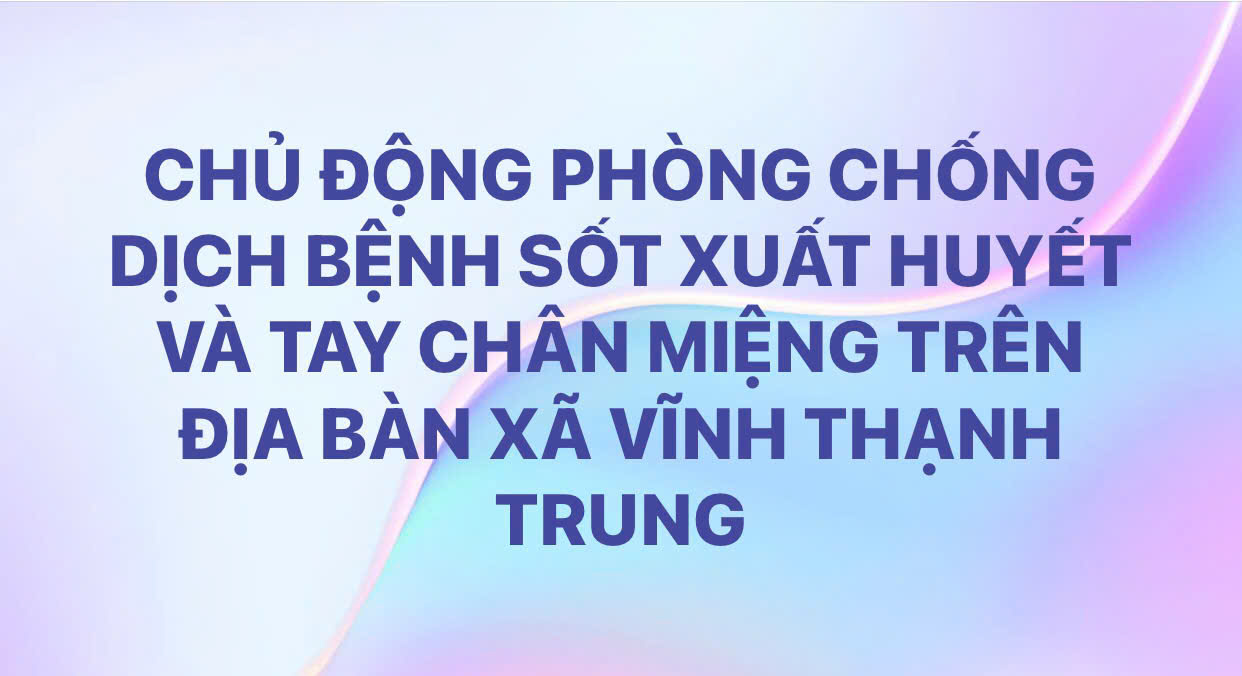 CHỦ ĐỘNG PHÒNG CHỐNG DỊCH BỆNH SỐT XUẤT HUYẾT VÀ TAY CHÂN MIỆNG TRÊN ĐỊA BÀN XÃ VĨNH THẠNH TRUNG
