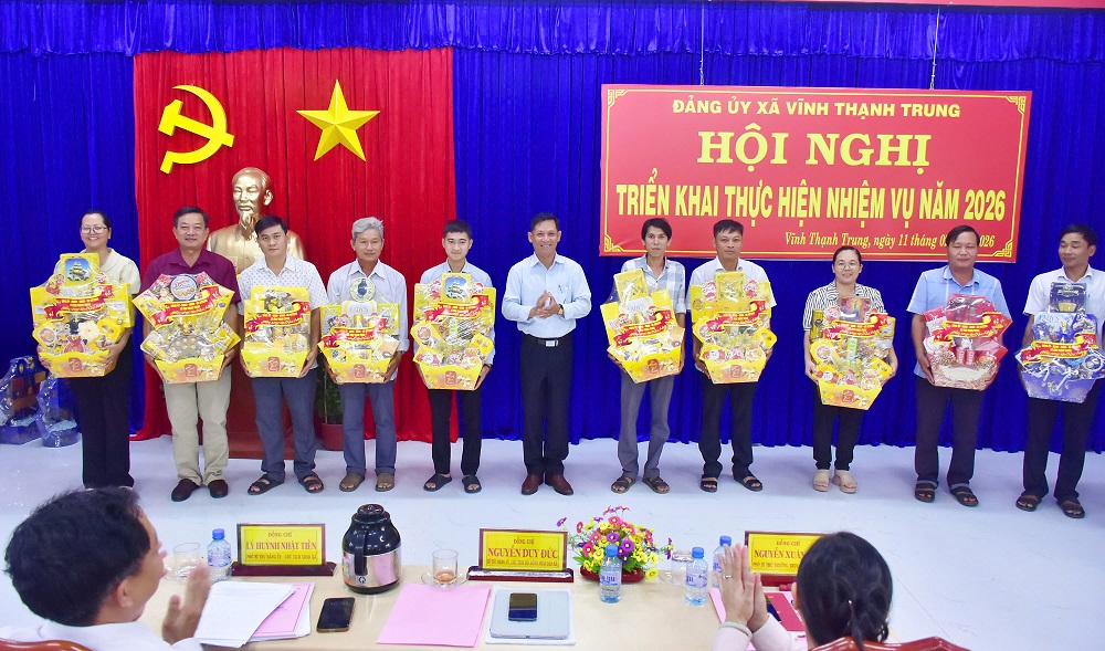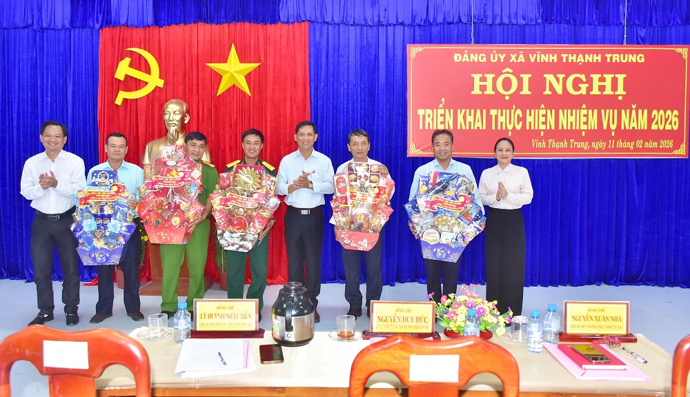 Chiều 11/2, Đảng ủy xã Vĩnh Thạnh Trung tổ chức Hội nghị triển khai thực hiện nhiệm vụ năm 2026. Bí thư Đảng ủy xã Vĩnh Thạnh Trung Nguyễn Duy Đức chủ trì hội nghị.