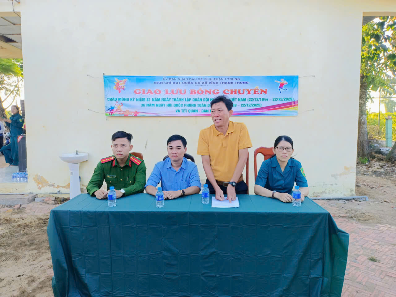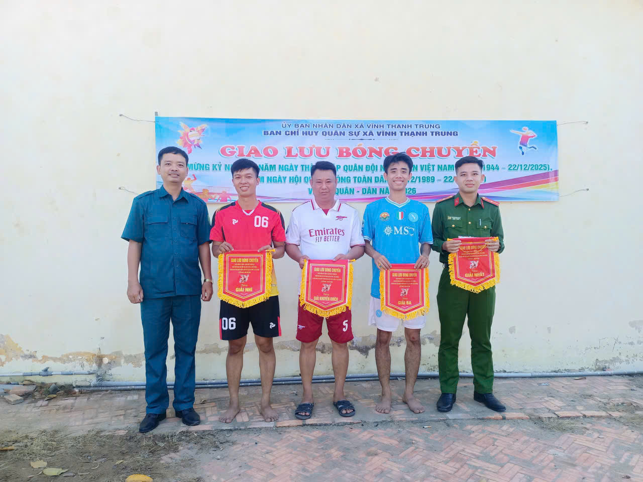 Hòa trong không khí thi đua sôi nổi chào mừng kỷ niệm 81 năm Ngày thành lập Quân đội Nhân dân Việt Nam (22/12/1944 – 22/12/2025); 36 năm Ngày hội Quốc phòng toàn dân (22/12/1989 – 22/12/2025), và Tết Quân dân năm 2026, Ban Chỉ huy Quân sự xã Vĩnh Thạnh Trung tổ chức buổi giao lưu bóng chuyền giữa cán bộ, chiến sĩ Ban Chỉ huy Quân sự xã cùng lực lượng Phó Trưởng ấp kiêm Ấp đội trưởng 19 ấp và cán bộ, chiến sĩ Công an xã.