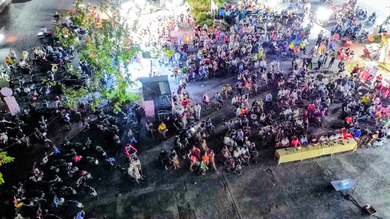 Hàng trăm người dân Vĩnh Thạnh Trung đến xem phim “Mưa đỏ”