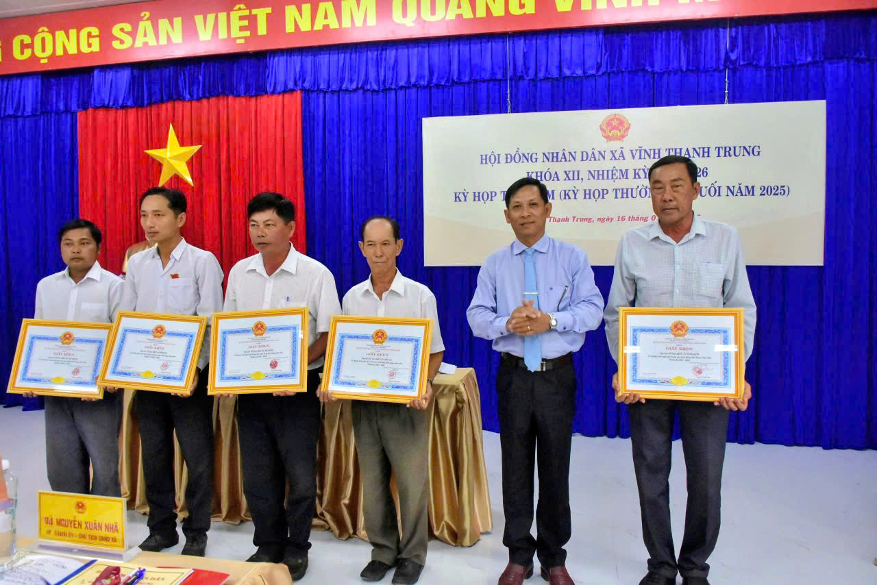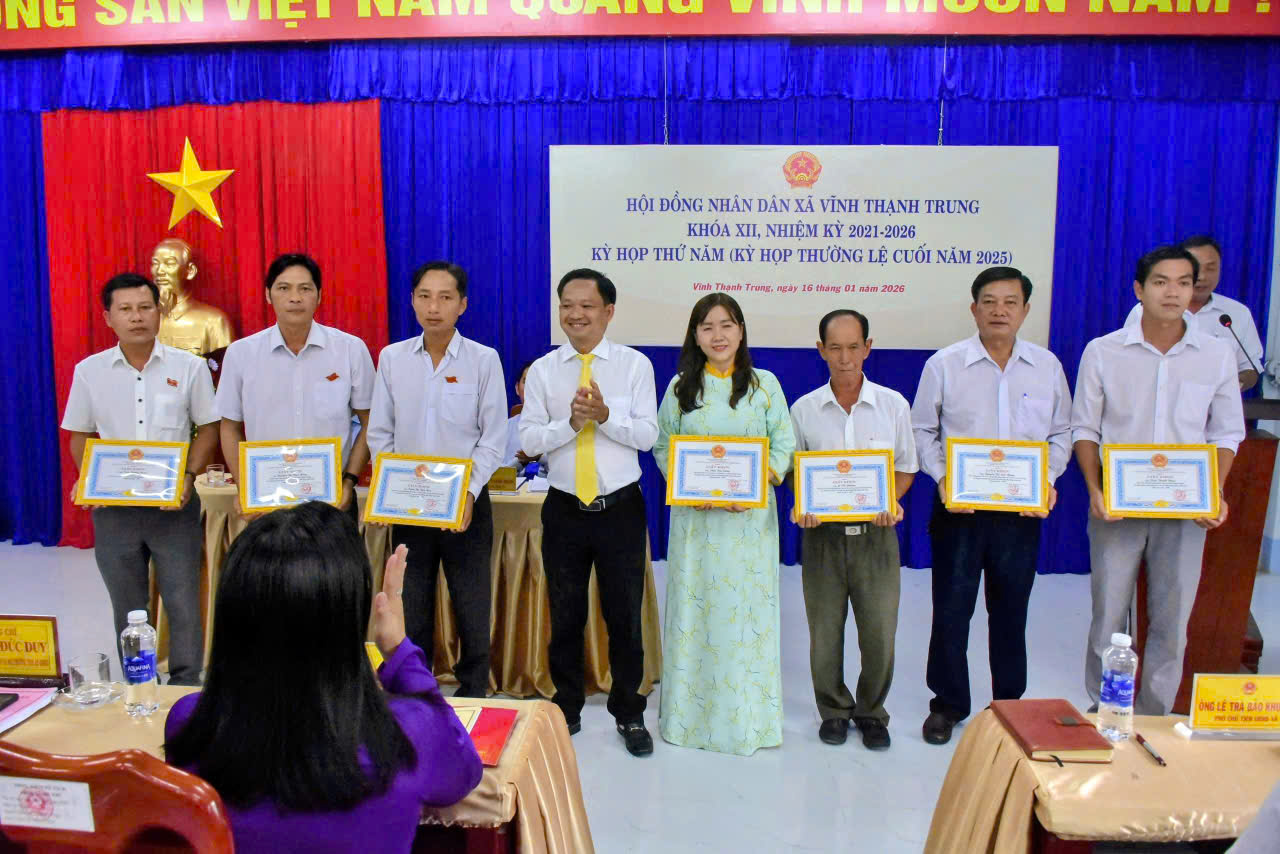 Dịp này, UBND xã Vĩnh Thạnh Trung cũng đã khen thưởng đối với những tập thể, cá nhân có thành tích xuất sắc trong các hoạt động HĐND, nhiệm kỳ 2021-2026.