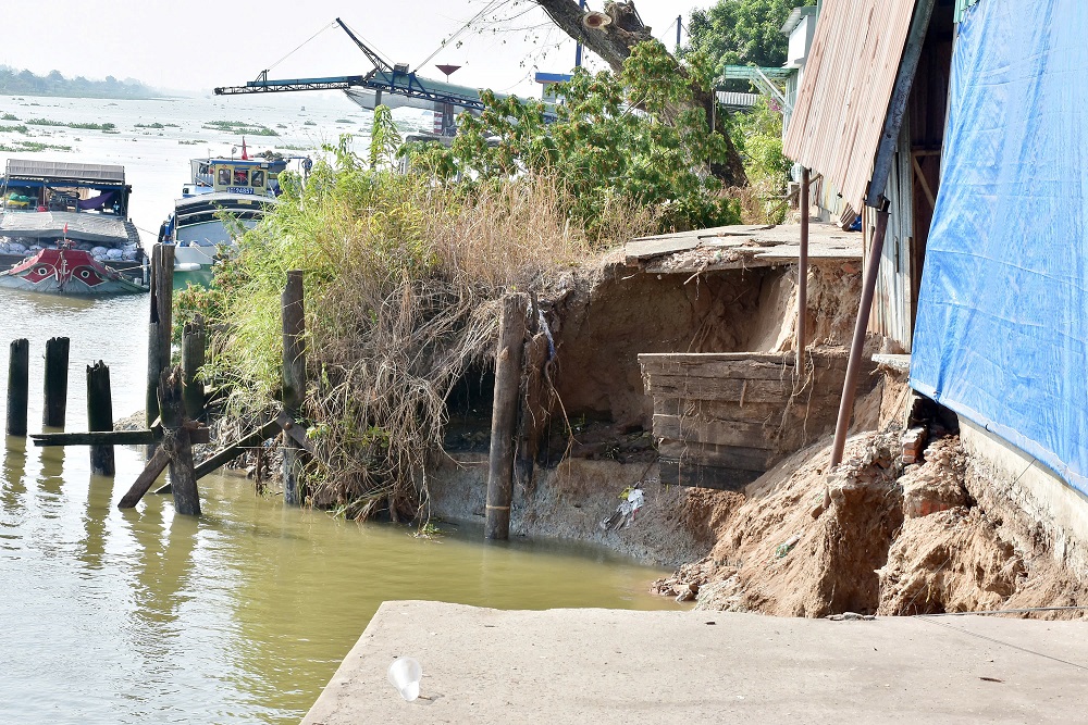 Trước đó, khoảng 6 giờ ngày 10/4, đã xảy ra đoạn sạt lở dài khoảng 50m, làm sụp hoàn toàn bờ kè bảo vệ và 2 băng tải lúa gạo của Công ty Lương thực thực phẩm An Giang, không có thương vong về người.