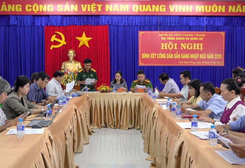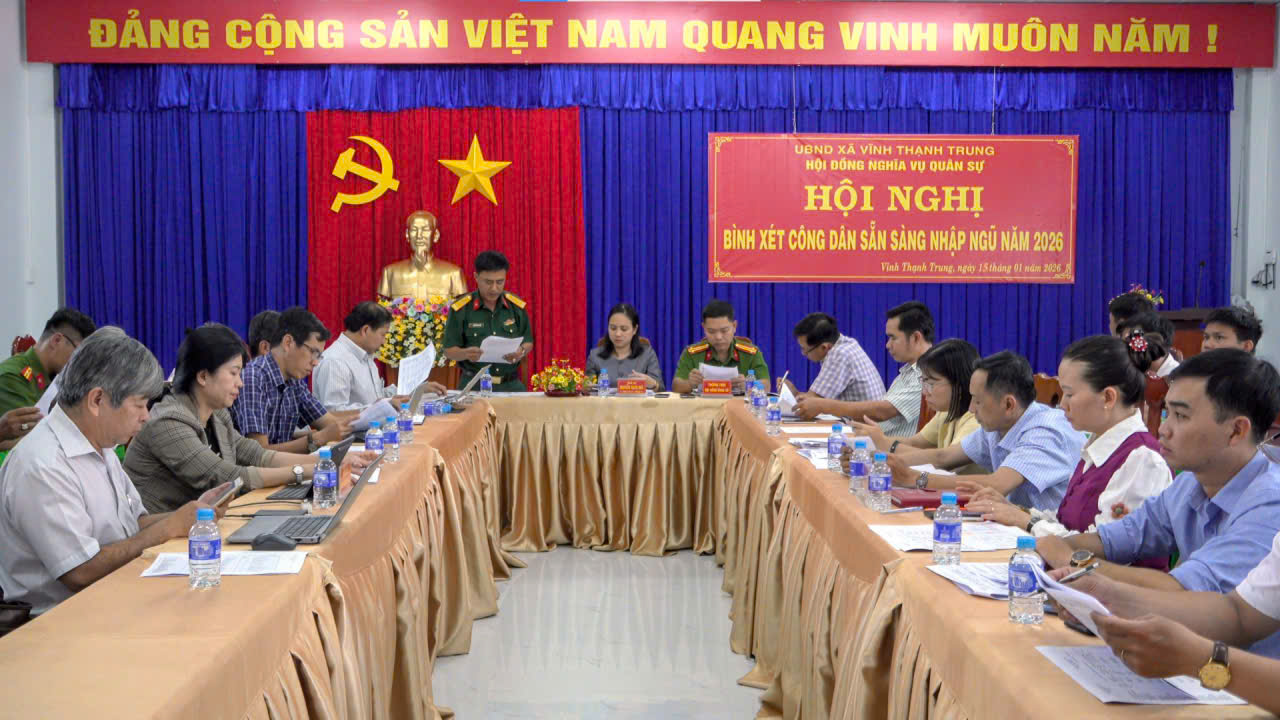 Chiều 15/1, Hội đồng Nghĩa vụ quân sự (NVQS ) xã Vĩnh Thạnh Trung tổ chức hội nghị bình xét công dân sẵn sàng nhập ngũ năm 2026. Hội nghị do đồng chí Nguyễn Xuân Nhã – Phó Bí thư Đảng ủy, Chủ tịch UBND xã, kiêm Chủ tịch Hội đồng NVQS xã chủ trì.