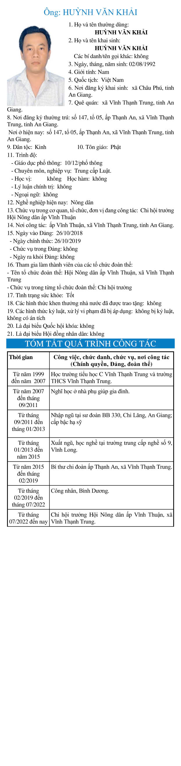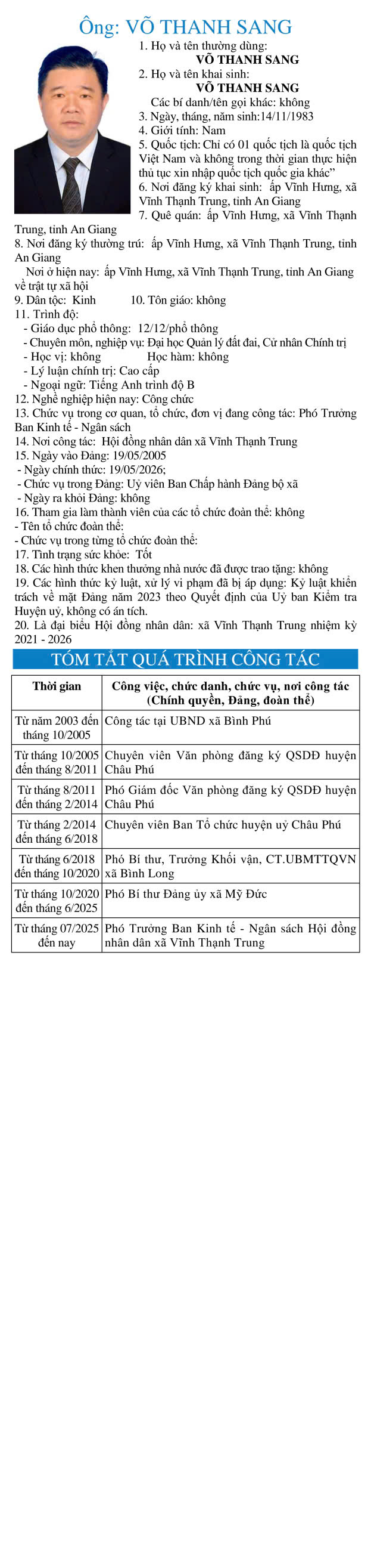 TRÂN TRỌNG GIỚI THIỆU TIỂU SỬ TÓM TẮT CỦA NHỮNG NGƯỜI ỨNG CỬ ĐẠI BIỂU HỘI ĐỒNG NHÂN DÂN XÃ VĨNH THẠNH TRUNG KHÓA XIII, NHIỆM KỲ 2026 - 2031 tại Đơn vị bầu cử số 4, gồm các ấp Vĩnh Bình, Vĩnh An