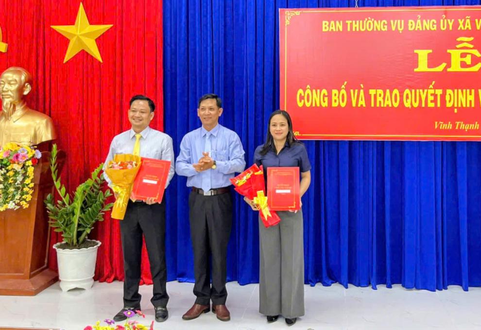 Chiều ngày 30/3, Đảng ủy xã Vĩnh Thạnh Trung tổ chức Lễ công bố và trao quyết định của Ban Thường vụ Tỉnh ủy An Giang và Đảng ủy xã về việc chỉ định bổ sung nhân sự Ban Chấp hành, Ban Thường vụ và các chức danh chủ chốt tại địa phương.