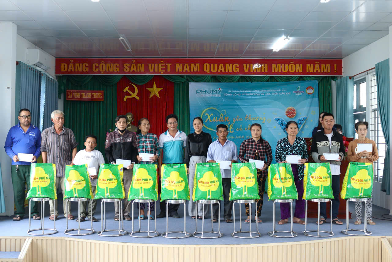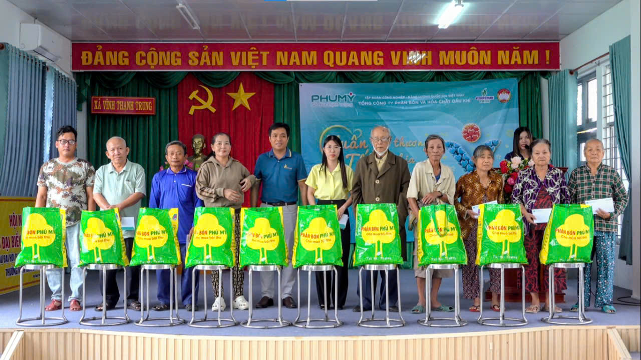 Sáng ngày 29-1, Ủy ban MTTQ Việt Nam xã Vĩnh Thạnh Trung đã phối hợp cùng Công ty Cổ phần Phân bón và Hóa chất Dầu khí Tây Nam Bộ (Phú Mỹ Tây Nam Bộ) tổ chức buổi trao tặng quà Tết đầy ý nghĩa cho các hộ gia đình nghèo, cận nghèo trên địa bàn. Bà Nguyễn Xuân Nhã, Phó Bí thư Thường trực Đảng ủy xã; ông Trần Thanh Nhàn – Phó Chủ tịch HĐND xã; ông Lê Thanh Tùng - Phó giám đốc Công ty Cổ phần Phân bón và Hoá chất Dầu khí Tây Nam Bộ đã đến dự.