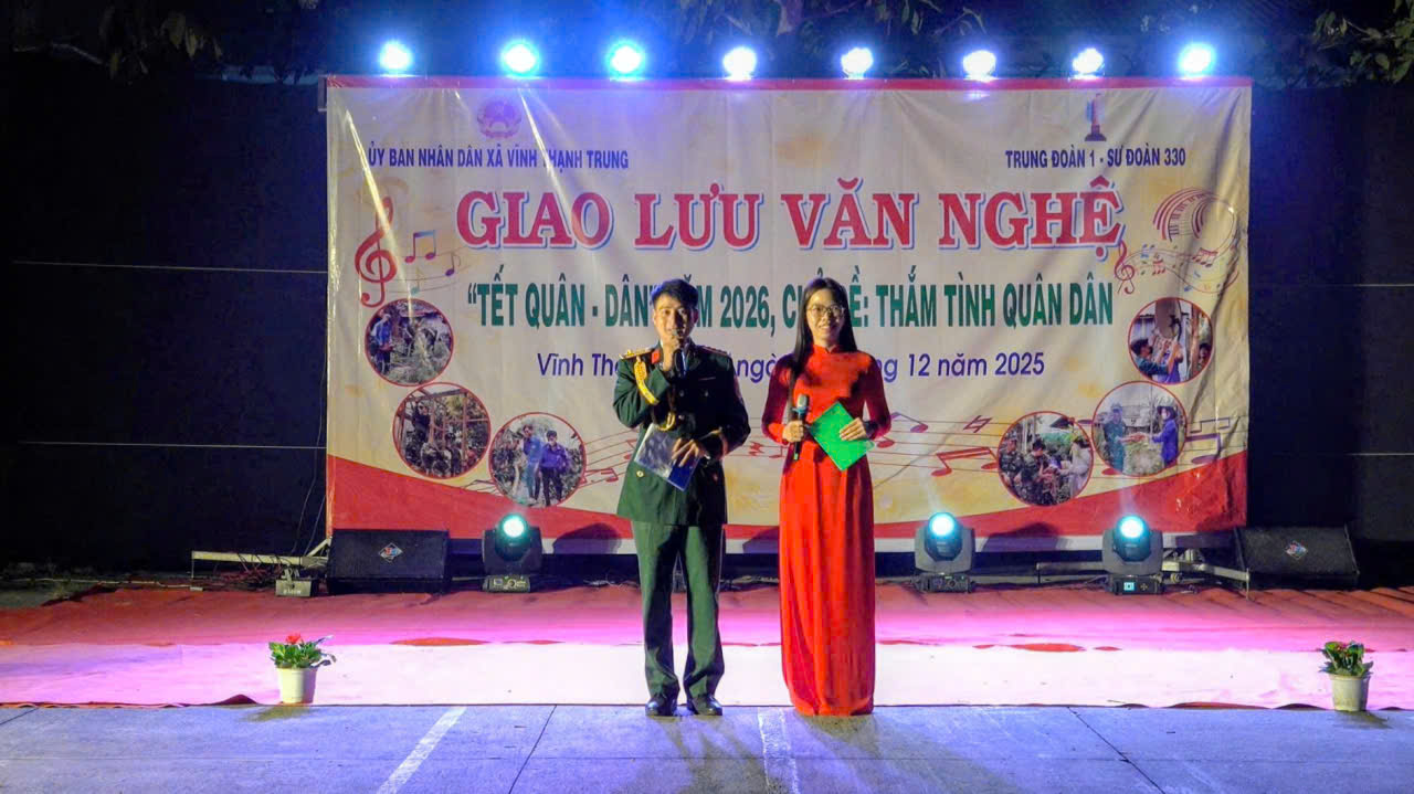 Tối ngày 29/12/2025, UBND xã Vĩnh Thạnh Trung phối hợp cùng Trung đoàn bộ binh 1 (Sư đoàn 330) tổ chức đêm giao lưu văn nghệ với chủ đề “Thắm tình Quân - Dân”. Đây là hoạt động ý nghĩa nhằm tổng kết chuỗi sự kiện trong chương trình “Tết Quân - Dân” năm 2026 tại xã Vĩnh Thạnh Trung.