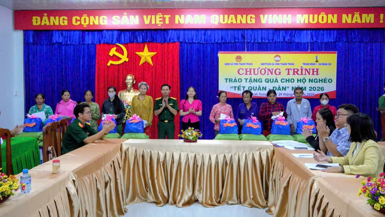 Chuỗi hoạt động “Tết Quân - Dân” năm nay tại xã Vĩnh Thạnh Trung đã tạo được sức lan tỏa mạnh mẽ, thu hút hơn 1.200 lượt cán bộ, chiến sĩ tham gia. Sau một tuần ra quân quyết liệt, chương trình đã để lại những kết quả ấn tượng, góp phần thay đổi diện mạo địa phương: Lắp đặt 50 trụ đèn đường năng lượng mặt trời tại tuyến Mương Khai (trị giá 265 triệu đồng); rải đá cấp phối đường Mương Bộ đội, trị giá khoảng 14 triệu đồng; phát hoang và vệ sinh hơn 11km đường giao thông nông thôn; khởi công và hoàn thành 01 căn nhà Đại đoàn kết trị giá 50 triệu đồng; trao tặng 50 suất quà cho người nghèo; tổ chức gói 650 đòn bánh tét tặng gia đình chính sách, bà con nghèo; chỉnh trang Nghĩa trang liệt sĩ,...