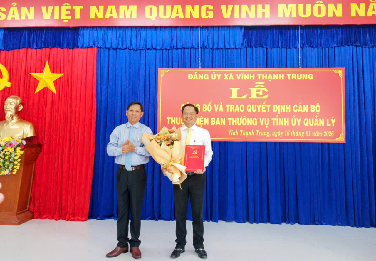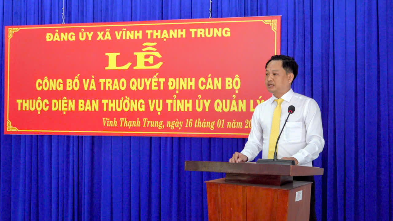 VĨNH THẠNH TRUNG: CÔNG BỐ QUYẾT ĐỊNH CỦA BAN THƯỜNG VỤ TỈNH ỦY VỀ CÔNG TÁC CÁN BỘ