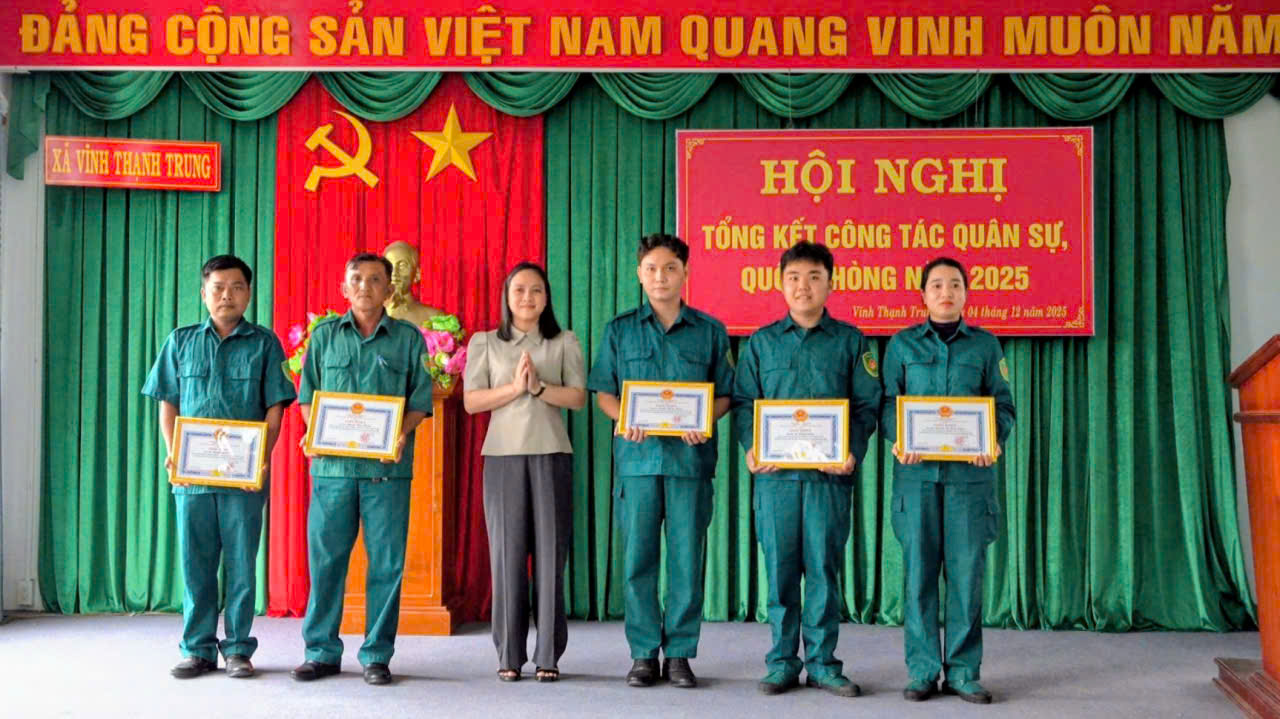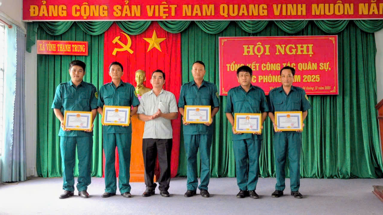 Năm 2025, mặc dù còn nhiều khó khăn, nhưng với sự nỗ lực của cán bộ, chiến sĩ Ban Chỉ huy quân sự xã, cùng sự chỉ đạo sát sao của cấp ủy, chính quyền, và sự chỉ đạo, hướng dẫn kịp thời của cơ quan quân sự cấp trên, công tác quân sự, quốc phòng xã Vĩnh Thạnh Trung đã đạt được nhiều thành tích nổi bật. Hoàn thành 100% chỉ tiêu tuyển chọn và gọi công dân nhập ngũ, đảm bảo chất lượng; duy trì nghiêm chế độ trực sẵn sàng chiến đấu, phối hợp nắm chắc tình hình an ninh, trật tự; tổ chức huấn luyện dân quân tự vệ đạt chỉ tiêu đề ra, đảm bảo an toàn; công tác xây dựng, củng cố lực lượng dân quân và bảo đảm hậu cần, kỹ thuật được thực hiện tốt.