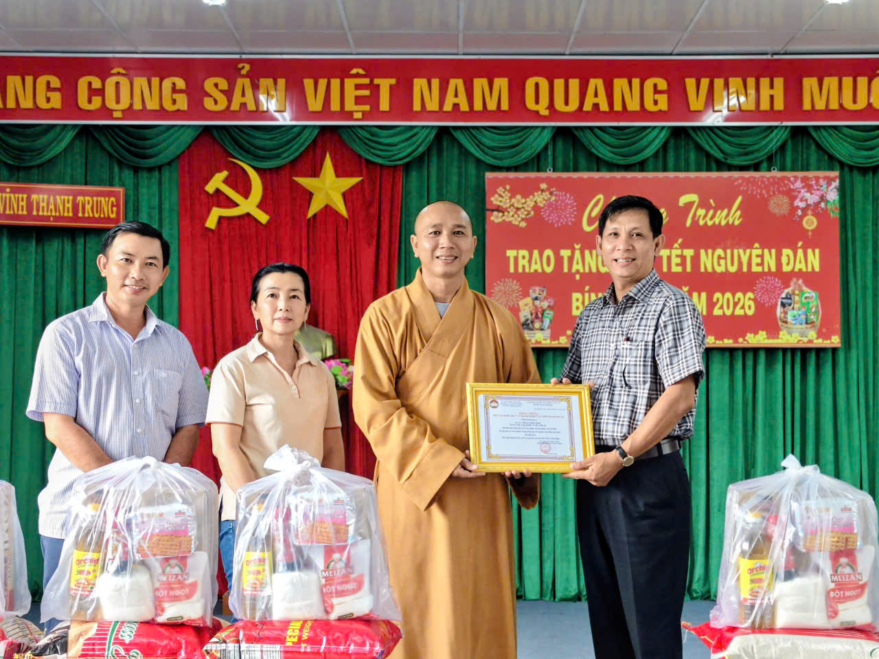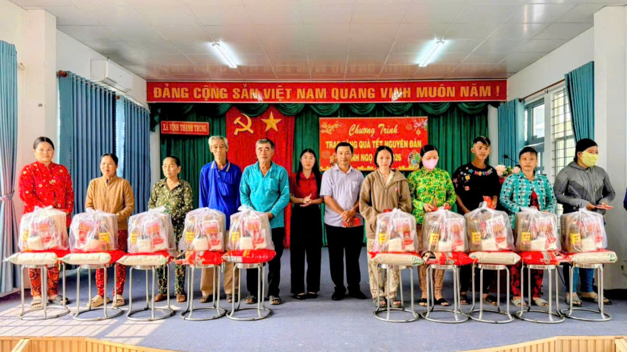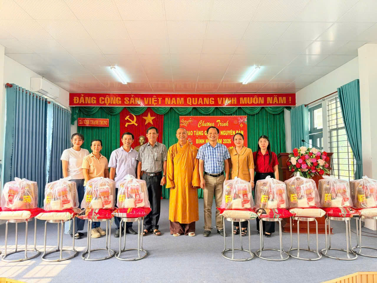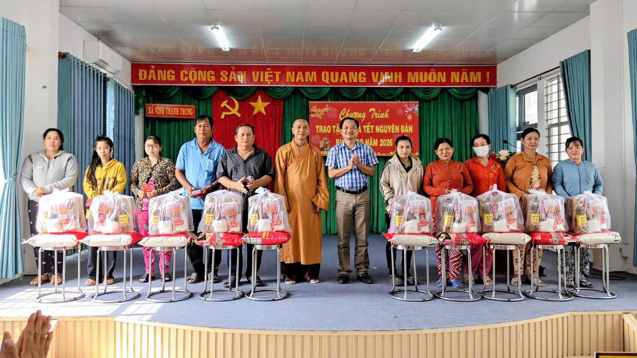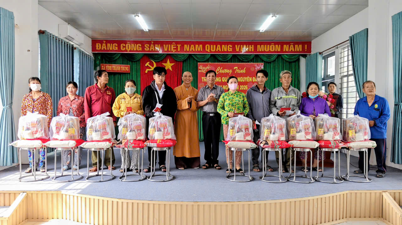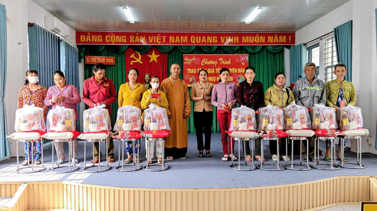 Chiều ngày 6/2, Đảng ủy, HĐND, UBND, MTTQ Việt Nam xã Vĩnh Thạnh Trung phối hợp cùng Đạo tràng chùa Long Khánh tổ chức chương trình trao quà Tết Nguyên đán Bính Ngọ 2026 cho các hộ cận nghèo trên địa bàn xã.