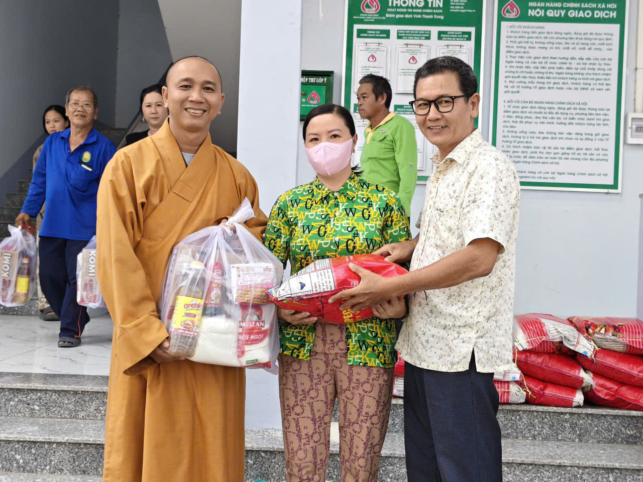 Tại buổi lễ, lãnh đạo địa phương cùng Đại Đức Thích Thiện Định – Trụ trì chùa Long Khánh và chùa Phật Ân đã trực tiếp thăm hỏi và trao tận tay 100 suất quà cho bà con thuộc diện hộ cận nghèo. Mỗi phần quà trị giá 400.000 đồng, góp phần hỗ trợ các gia đình có thêm điều kiện chuẩn bị cho một cái Tết đầy đủ và ấm cúng hơn.