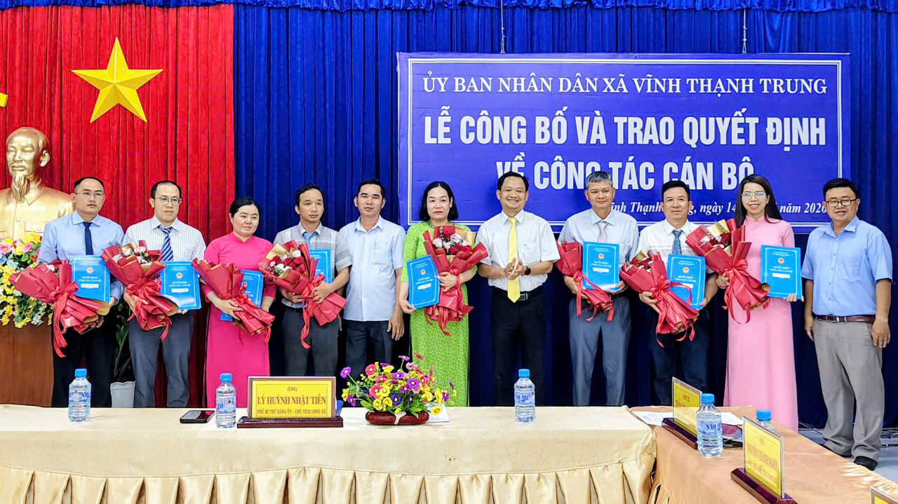 Thực hiện Đề án sắp xếp Trung tâm Khuyến nông của UBND tỉnh An Giang và mô hình Chính quyền địa phương hai cấp, UBND xã Vĩnh Thạnh Trung đã công bố các Quyết định tiếp nhận và phân công công tác đối với 07 viên chức từ Trung tâm Khuyến nông thuộc Sở Nông nghiệp và Môi trường tỉnh về công tác tại Trung tâm Dịch vụ tổng hợp xã.