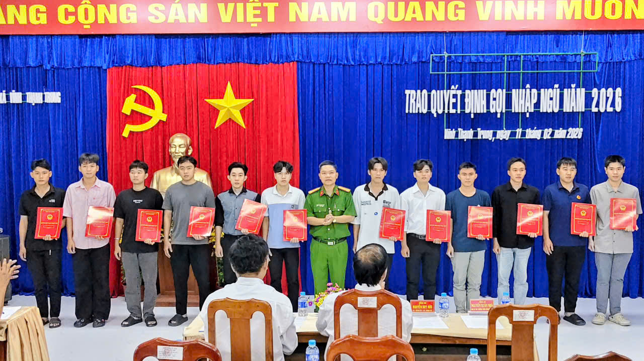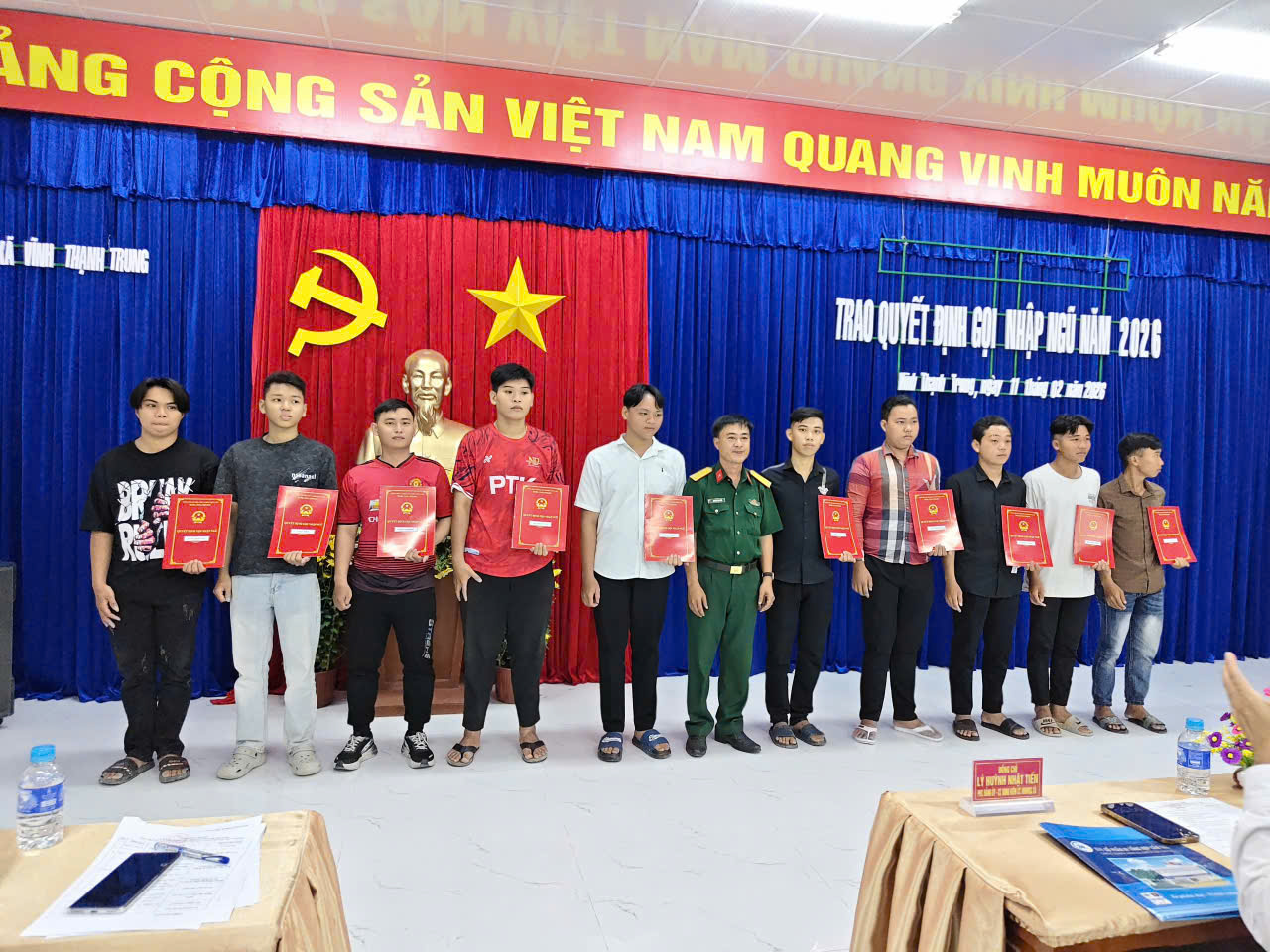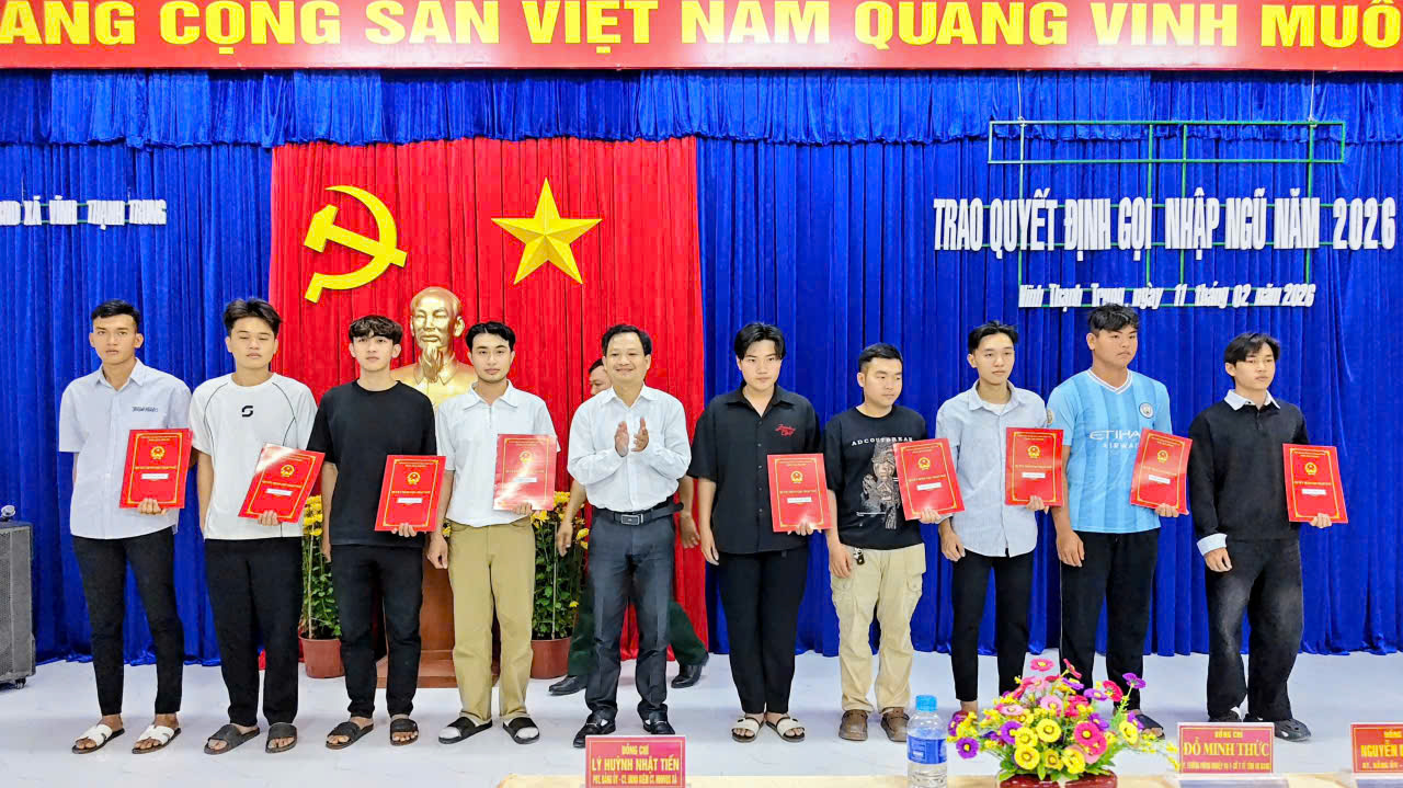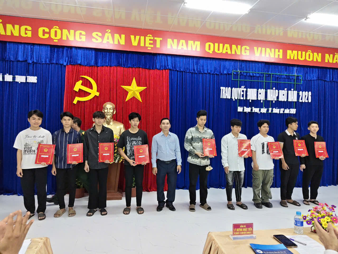 XÃ VĨNH THẠNH TRUNG TRAO LỆNH GỌI NHẬP NGŨ NĂM 2026 CHO 45 THANH NIÊN ƯU TÚ